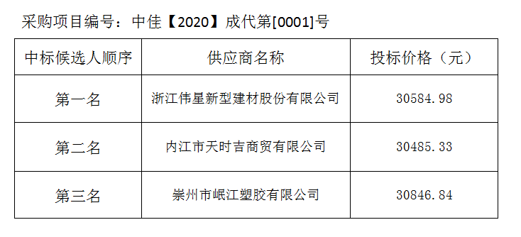 內(nèi)江市水務(wù)有限責(zé)任公司PE給水管及管件采購項目評標(biāo)結(jié)果公示