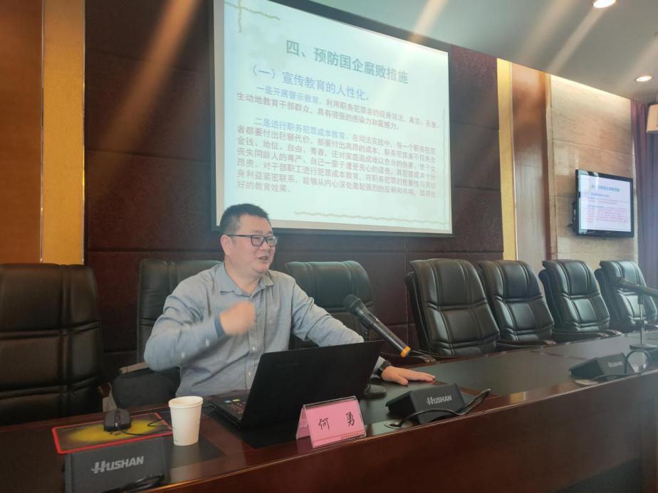 講座上,何勇以“國有企業(yè)預防腐敗實踐探索”為題,從建國以來反腐敗歷史的簡要回顧、當前國企領域反腐敗的形勢、水務企業(yè)違紀違法典型案例、預防國企腐敗措施四個方面,剖析腐敗根源,深入淺出地將國有企業(yè)預腐防變工作做了詳細的梳理和講解,具有很強的教育性和警示性。公司黨委副書記、總經(jīng)理李濤結合講座內(nèi)容,對進一步抓好黨風廉政工作提了四點要求:一是要強化政治定力;二是要抓實紀法學習;三是要堅持嚴于律己;四是要自覺接受監(jiān)督。李濤強調(diào),講座的目的在于進一步提高干部職工對黨風廉政建設重要性的認識,切實加強廉潔自律教育,將黨風廉政建設不斷引向深入。