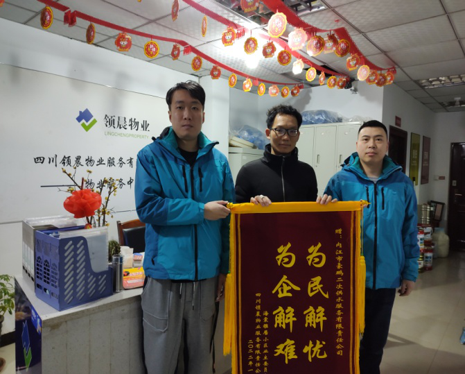 “我們小區(qū)二次加壓設(shè)備運行異常,樓棟的9-18層已經(jīng)停水2天了,請你們幫我們檢查下……”。1月24日下午14時,東興區(qū)海棠雅居物業(yè)工作人員向市水務(wù)公司豪鵬二次供水公司打來求助電話。經(jīng)查,該小區(qū)二次供水設(shè)施老舊,設(shè)備常年未進(jìn)行維護(hù)保養(yǎng),導(dǎo)致設(shè)備故障和中區(qū)出水管止回閥銹蝕堵塞。該小區(qū)二次供水設(shè)備尚未移交豪鵬公司管理,加之臨近春節(jié),物業(yè)專業(yè)維修人員缺乏,本著保障群眾用水安全的初心,豪鵬公司立即組織開展供水搶修工作,于當(dāng)日18時完成搶修并恢復(fù)正常供水。小區(qū)業(yè)主委員會、業(yè)主和小區(qū)物業(yè)對市水務(wù)公司“為群眾辦實事”優(yōu)質(zhì)服務(wù)點贊,被授予錦旗“為民解憂 為企解難”。