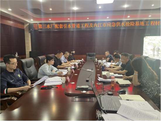 4月24日下午,公司常務(wù)副總經(jīng)理唐賢彬在三樓一會議室主持召開會議,專題研究三水廠配套引水管道工程和應(yīng)急搶險基地工程項目建設(shè)所需設(shè)備材料詢價工作。市發(fā)改委、市財政局、市住建局、市國資委、內(nèi)投集團(tuán)和水務(wù)公司等詢價工作組相關(guān)人員參加會議。