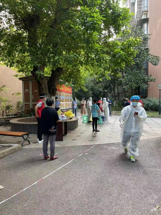 支部宣傳委員倪勇帶頭,與第六黨支部黨員余川、楊華文,水務(wù)公司退休黨員何蜀治、王萍在天河街小區(qū)組建成臨時黨支部,全力以赴投入到小區(qū)抗疫一線工作中,協(xié)助社區(qū)工作人員填寫和分發(fā)通行證,在核酸檢測點維持秩序。黨員熊瑞楷積極加入盧浮春天小區(qū)業(yè)主委員會,參與送黃碼人員到就近醫(yī)院做核酸檢測、分發(fā)通行證、維持核酸檢測現(xiàn)場排隊秩序、護送出門看病或開生活超市的特殊人群外出等工作;黨員楊艷、王曉東、廖玲三名同志分別在靈秀清風(fēng)苑、恒祥嘉苑、歐城印象小區(qū)擔(dān)任十戶長,協(xié)助小區(qū)物業(yè)上門通知每戶居民做核酸。