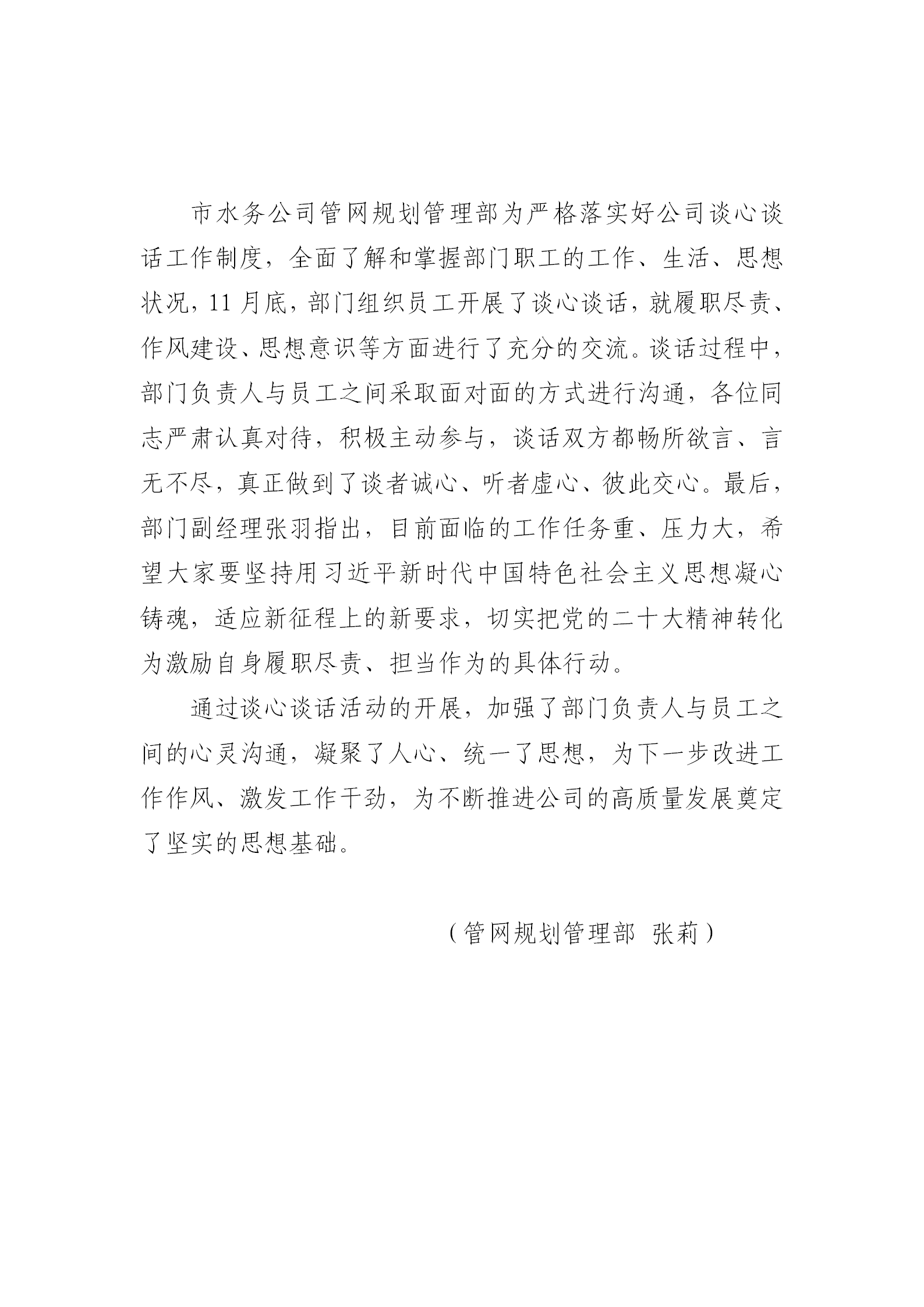 管網(wǎng)規(guī)劃管理部開展談心談話活動(dòng)