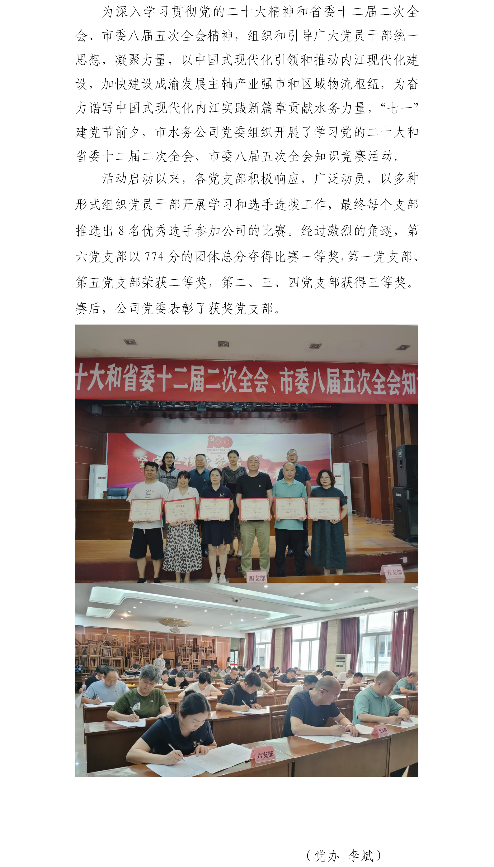 市水務(wù)公司開展黨的二十大和省委十二屆二次全會、市委八屆五次全會知識競賽