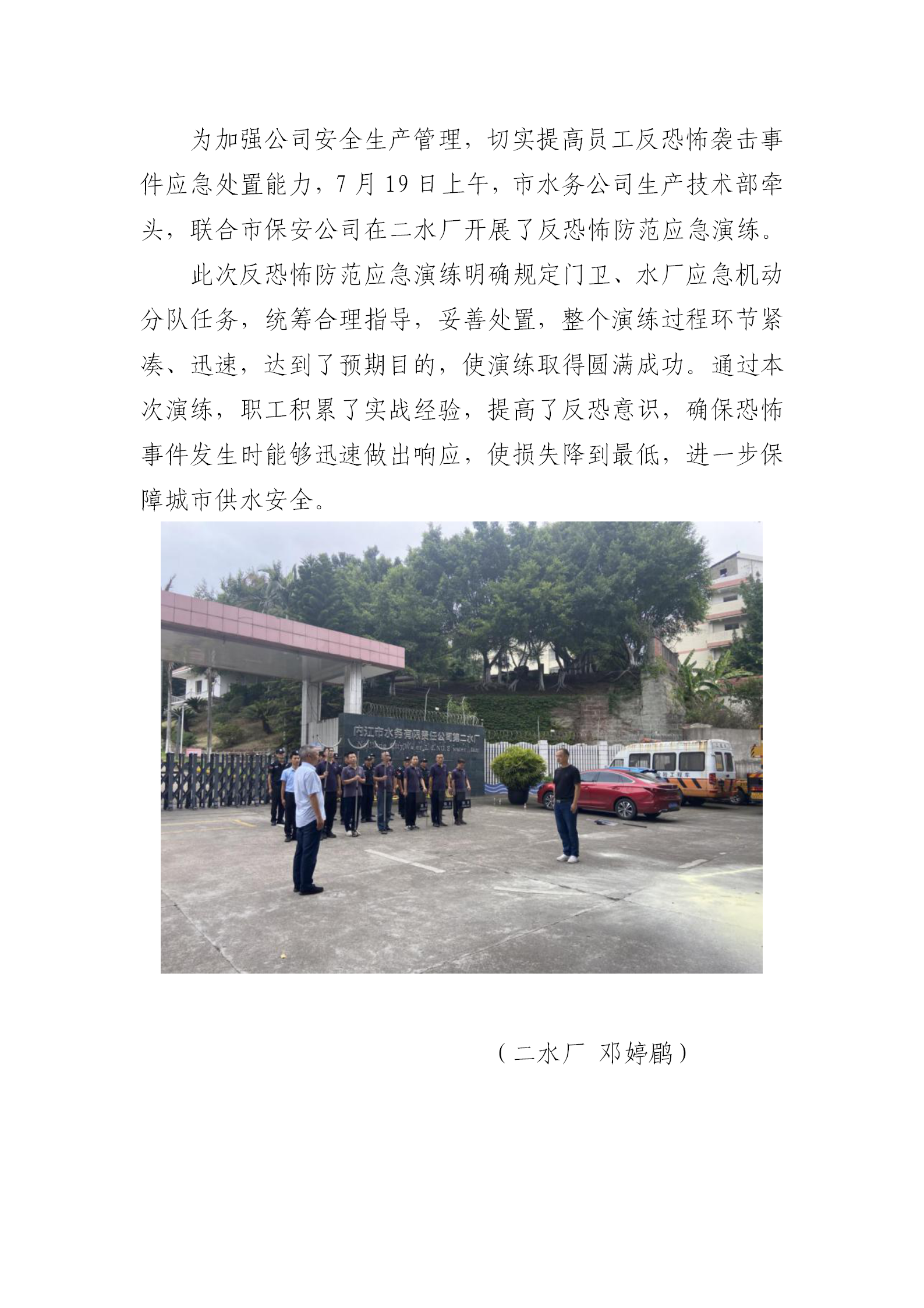 二水廠開展反恐怖防范應(yīng)急演練