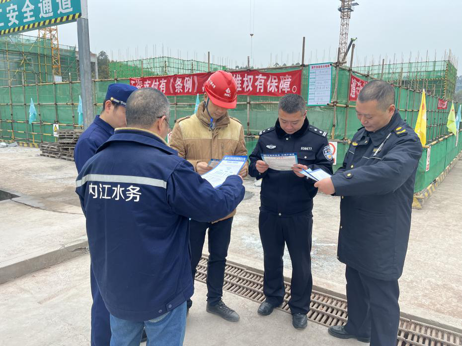 12月21日,內(nèi)江水務(wù)有限責(zé)任公司與公安、城管、消防三個(gè)部門(mén)進(jìn)行聯(lián)合執(zhí)法活動(dòng)。
