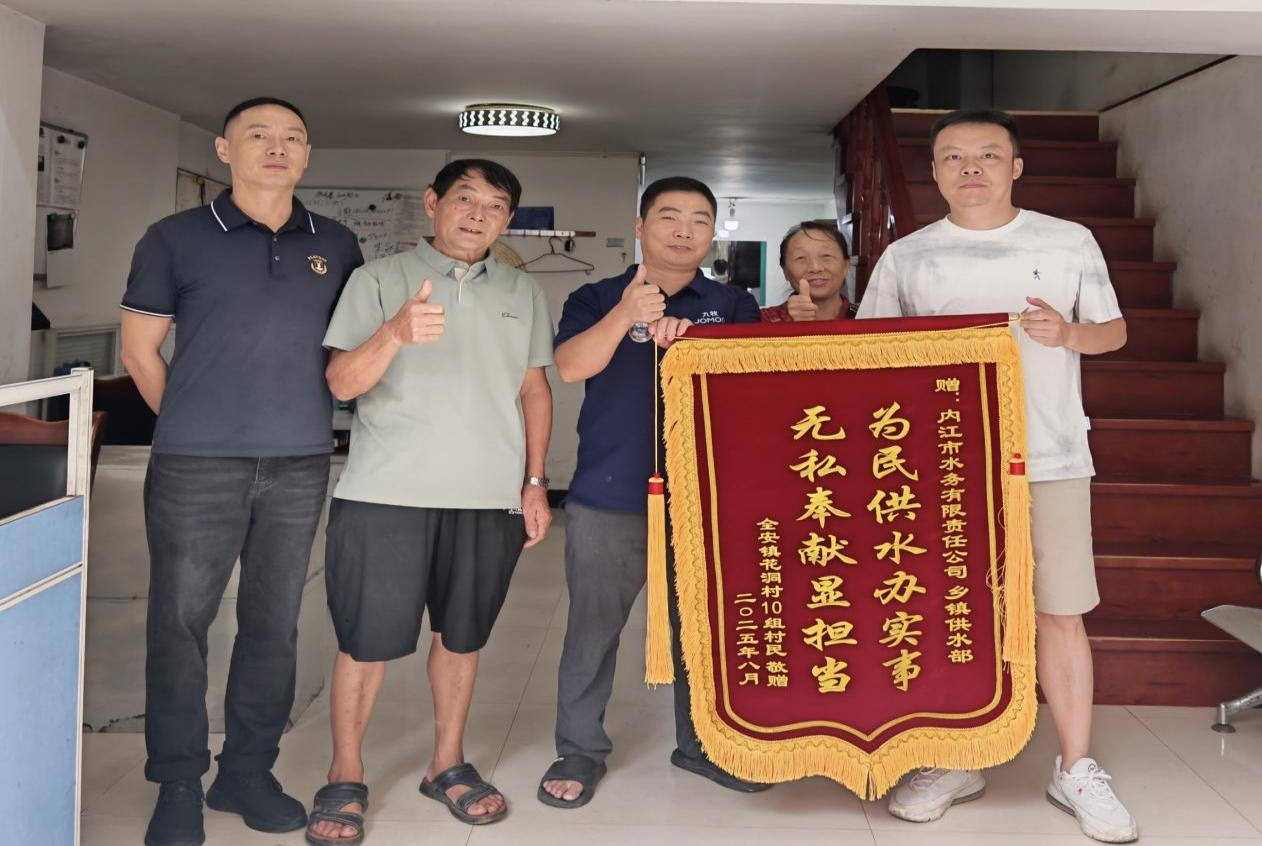 8月25日,花洞村五組村民代表將一面印有“為民供水辦實事 無私奉獻顯擔當”的錦旗贈予鄉(xiāng)鎮(zhèn)供水部,以此表達對部門高效、貼心服務的由衷感激。