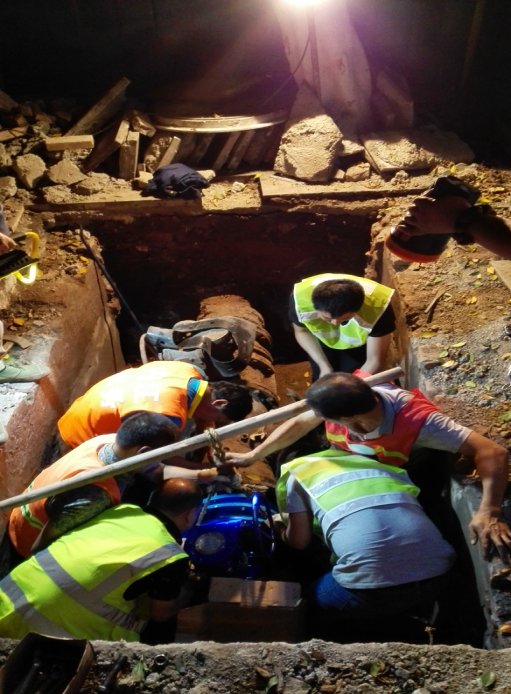 在管網(wǎng)規(guī)劃管理部、物資供應(yīng)部、豪盛管道安裝公司及工會等部門的緊密配合下,5月17日晚22時(shí),管網(wǎng)運(yùn)行部按改造實(shí)施方案對平安路兩側(cè)3臺蝶閥進(jìn)行了更換。為縮短停水時(shí)間,施工前管網(wǎng)運(yùn)行部組織召開了兩次施工分析會,制定了工作方案,并對施工現(xiàn)場提前組織開挖,設(shè)置安全圍擋、照明等安全設(shè)施,為順利實(shí)施蝶閥更換做好充分準(zhǔn)備。施工中,維修人員們克服深夜疲勞、操作場地狹小等不利因素,特別是楊孝成,鄧軼峰、劉超、程建軍等冒著高溫天氣及氧焊的熱浪,在弱電管線交錯縱橫的狹窄空間里拆卸生銹螺栓,安裝更新蝶閥。經(jīng)過7個多小時(shí)連續(xù)作業(yè),在18日凌晨5時(shí)順利完成此次改造工作,比預(yù)期通水時(shí)間提前1個小時(shí),保證了周邊用戶正常用水。