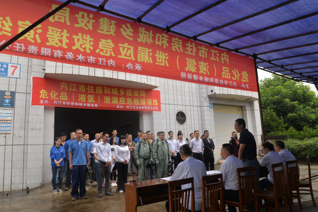 2017年6月16日上午,為做好危化品安全管理工作,保安全供水,公司在二水廠成功進(jìn)行液氯泄漏應(yīng)急救援演練。本次演練,由市住建局主辦、公司承辦,公司黨委書記、董事長、總經(jīng)理寧印福任總指揮,總工程師蒲彬任現(xiàn)場總指揮,生產(chǎn)技術(shù)部組織,二水廠具體實(shí)施,共計(jì) 50多人參與演練。