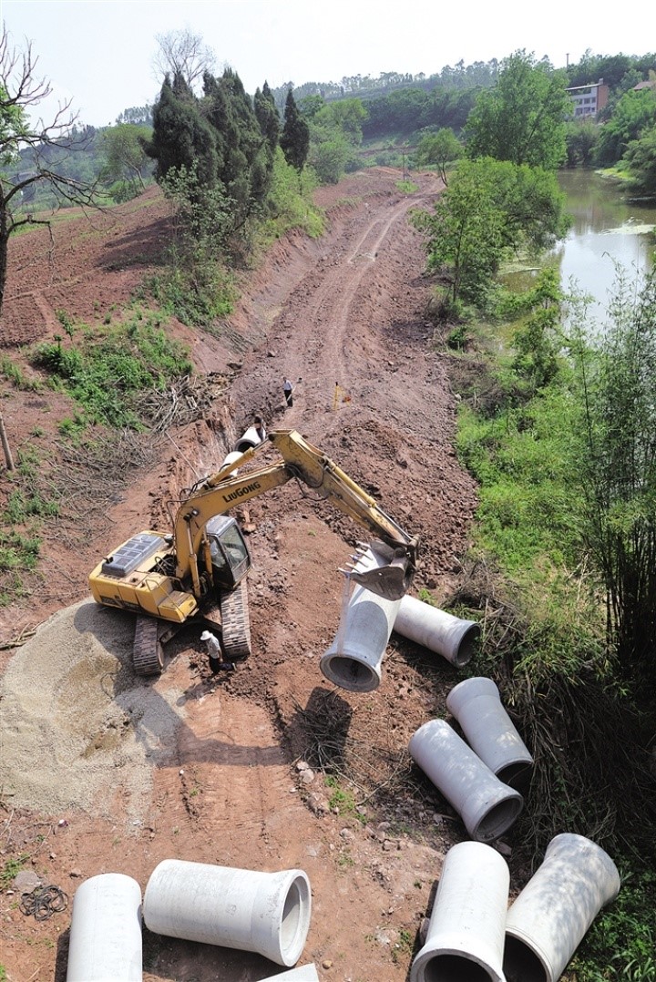 日前,記者來到位于東興區(qū)新江街道辦事處清流村(沱江、清流河、小青龍河交匯處),看到不少工人在工地上忙碌,有的開著挖機平場地,有的在挖溝槽埋管網(wǎng),有的在用貨車運輸土方,好不熱鬧。