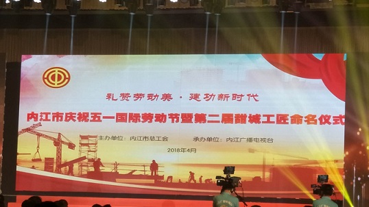 2018年4月26日下午,由市總工會(huì)舉辦的“禮贊勞動(dòng)美·建功新時(shí)代”內(nèi)江市慶祝五一國(guó)際勞動(dòng)節(jié)暨第二屆“甜城工匠”命名儀式在錦江國(guó)際酒店隆重舉行,市委、市政府主要領(lǐng)導(dǎo)參加了本次活動(dòng)。