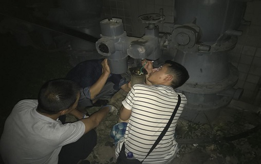 5月16日晚上19:43分,污水處理廠一期4號(hào)生化池進(jìn)氣閥跳閘,檢修人員放棄自身休息時(shí)間,立即趕赴現(xiàn)場(chǎng)開(kāi)展搶修。