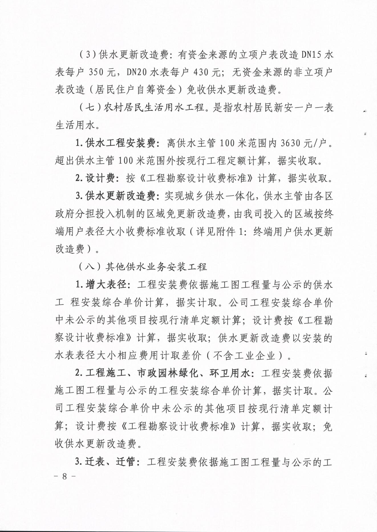 內(nèi)江市水務(wù)有限責(zé)任公司供水工程安裝及供水管道更新改造收費(fèi)管理辦法(試行)